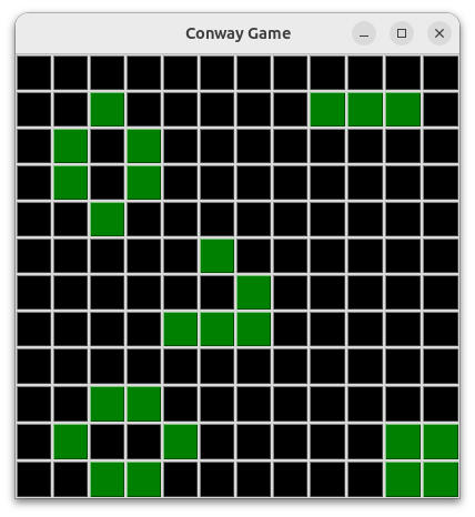 # False = мертва (чёрная), True = жива (зелёная)